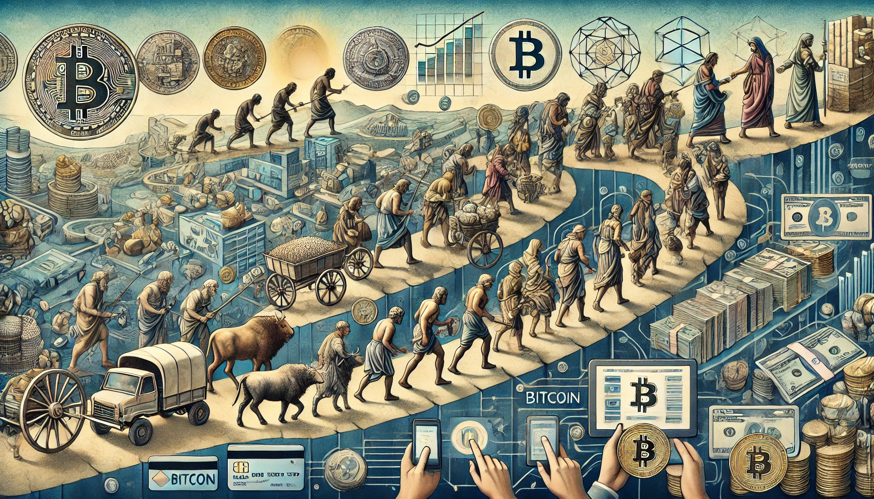 초기의 자연물 화폐는 공동체의 합의를, 금속 화폐는 국가의 권위를, 지폐는 금융 시스템의 확대를, 디지털 화폐는 기술의 융합을 상징합니다.